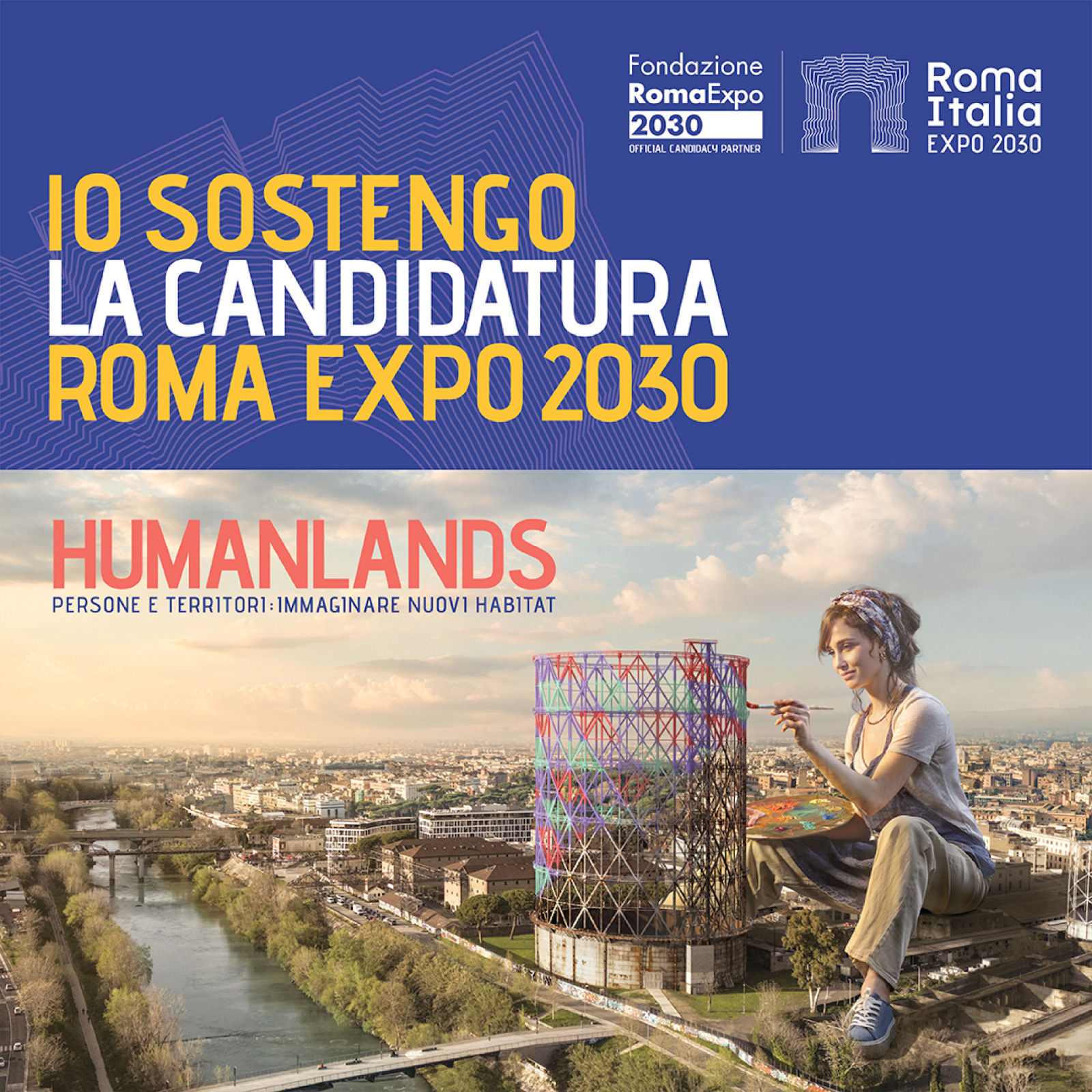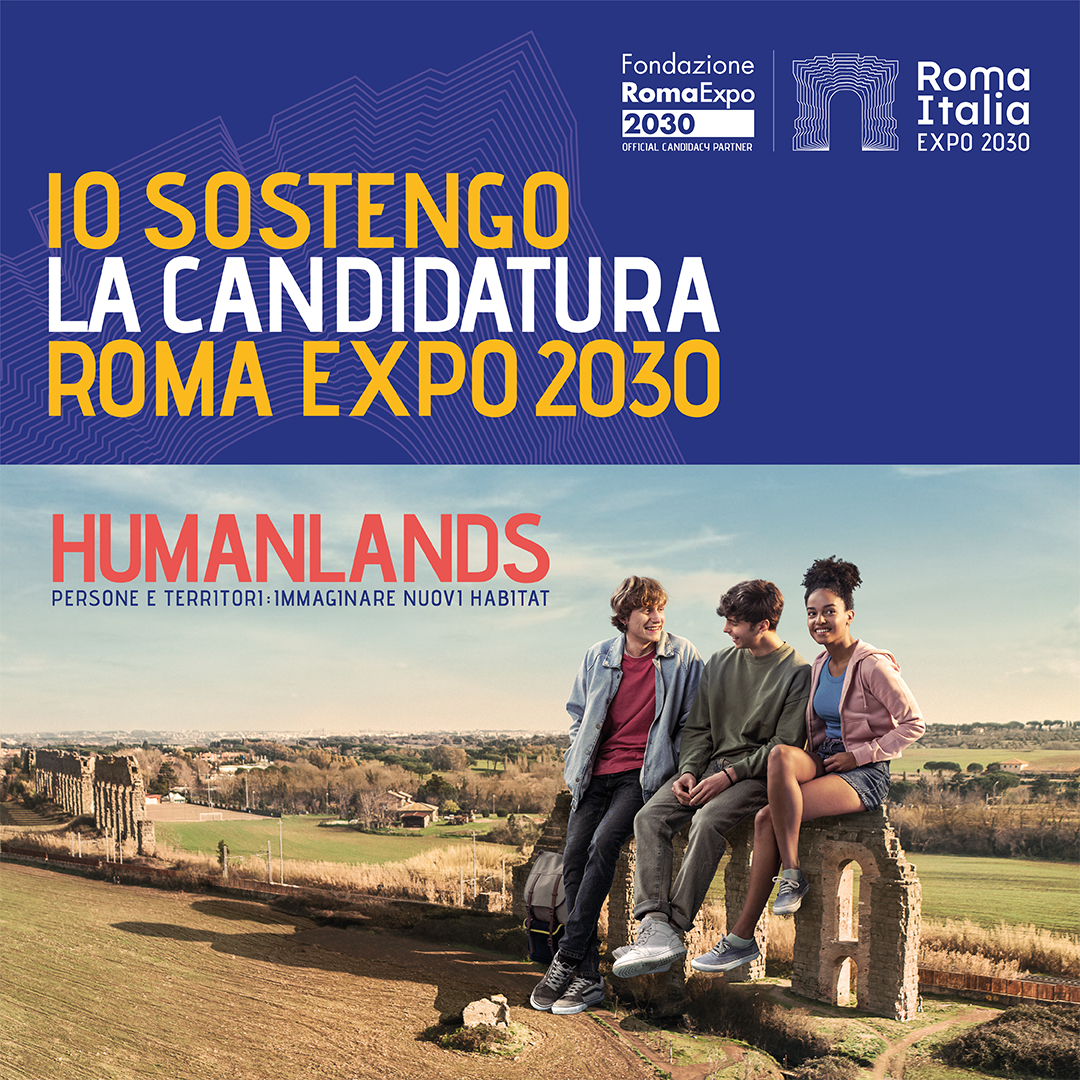 “HUMANLANDS è un neologismo coniato appositamente per sostenere la candidatura di Expo 2030 Roma ed il suo tema “People and Territories”. Expo sarà a tutti gli effetti un’occasione per iniziare a immaginare nuovi territori a misura d’uomo e nuove relazioni tra noi e i nostri habitat.